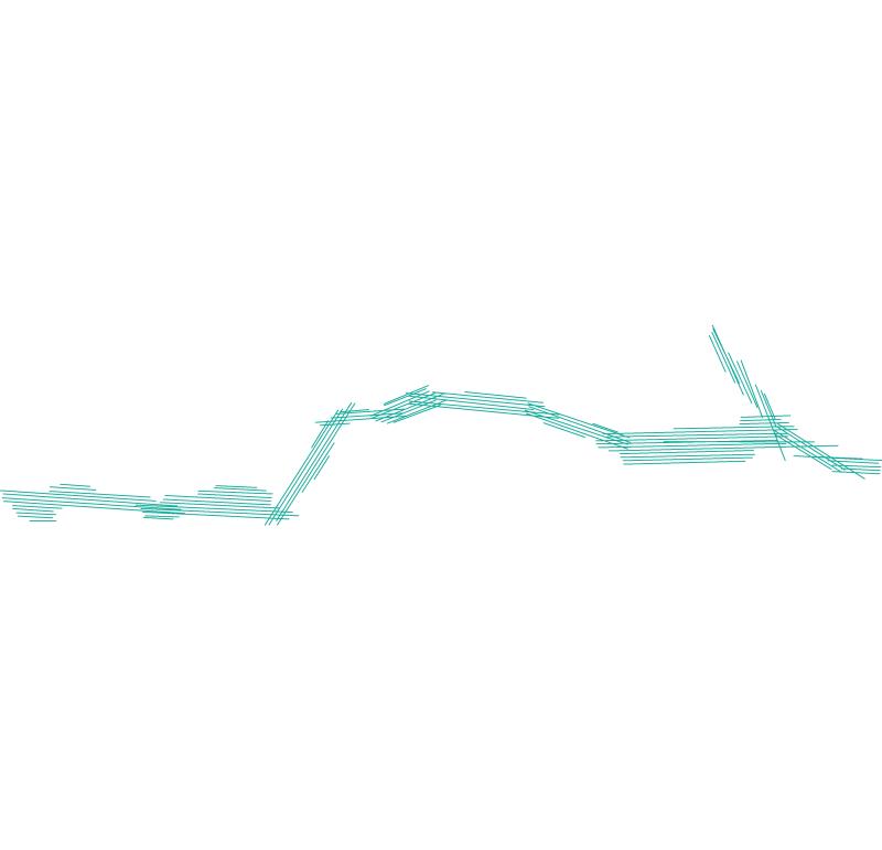 Overzicht van de vlieglijnen van de kribben van de Waal in 2009. Verklaring van de attributen: VLIEGDATUM = datum van opname